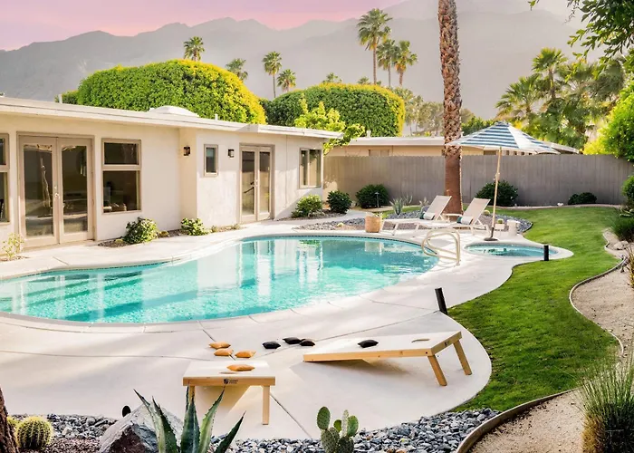 Le logement propose une salle à manger séparée avec une cafetière/théière. Les hôtes pourront également utiliser un micro-ondes et un réfrigérateur pour préparer leur propre repas. L'aéroport de Palm Springs est à environ 5 minutes en voiture, et l'arrêt de bus Tahquitz Canyon & Farrell assez proche de villa. Des berceaux sont mis à disposition des enfants.